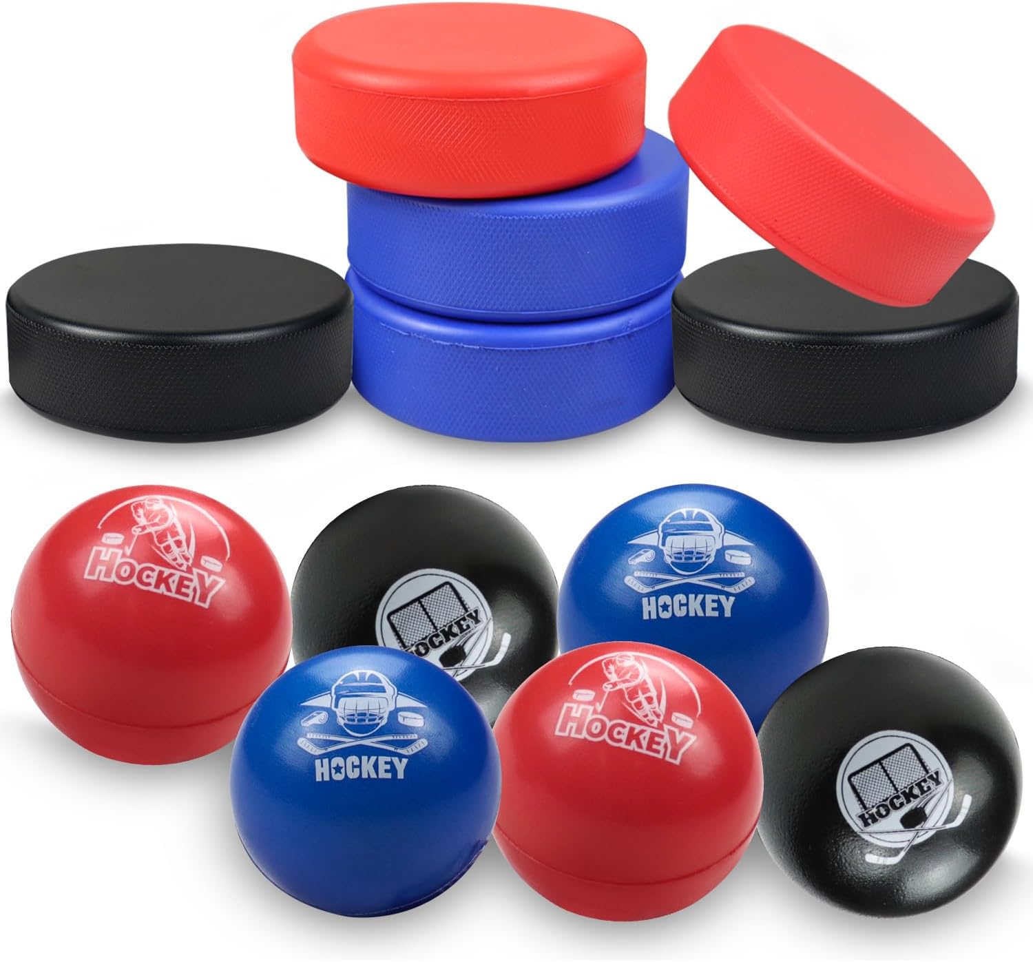 • Packing List: This package contains 12 ice balls, 6 x ice hockey balls(2 x black, 2 x blue, 2 x red), 6 x foam hockey pucks(2 x black, 2 x blue, 2 x red), which is sufficient to meet your daily replacement needs and can also be shared with friends